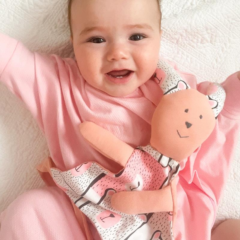 Được làm từ vải cotton hữu cơ mềm mại, chăn bông Bunny Hugs của chúng tôi phù hợp để giới thiệu như một trợ thủ an ủi cho trẻ sơ sinh. Tay và tai mềm mại có kích thước hoàn hảo để những bàn tay nhỏ xíu có thể nắm lấy - rất tốt để phát triển kỹ năng nắm bắt. Dây buộc chân có thể thắt nút để giữ núm vú giả hoặc để nhai/làm dịu.