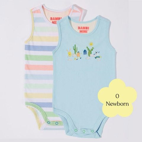 Bộ đồ liền thân Bambi Mini Co. Supersinglet 0 cho trẻ sơ sinh màu xanh pha lê và sọc 2 gói