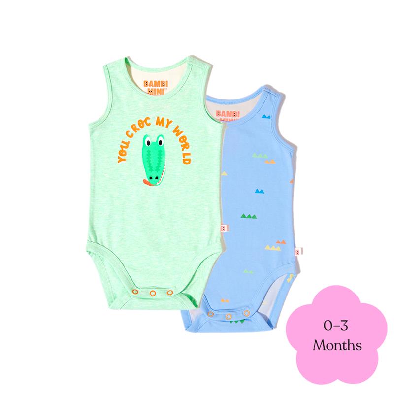 Bambi Mini Co. Bộ đồ liền thân Supersinglet cho bé trai màu xanh lá cây Croc và hình tam giác 2 gói 0-3