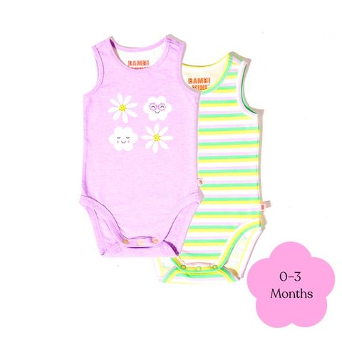 Bộ đồ liền thân Bambi Mini Co. Supersinglet cho bé gái họa tiết hoa tím và sọc kẹo 2 chiếc 0-3