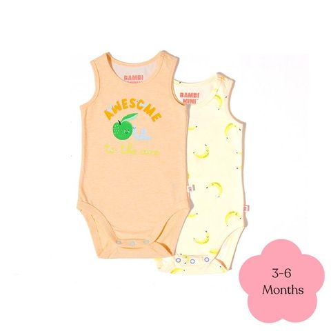 Bambi Mini Co. Bộ đồ liền thân siêu đơn Unisex Orange Awesome và Bananas 2 gói 3-6