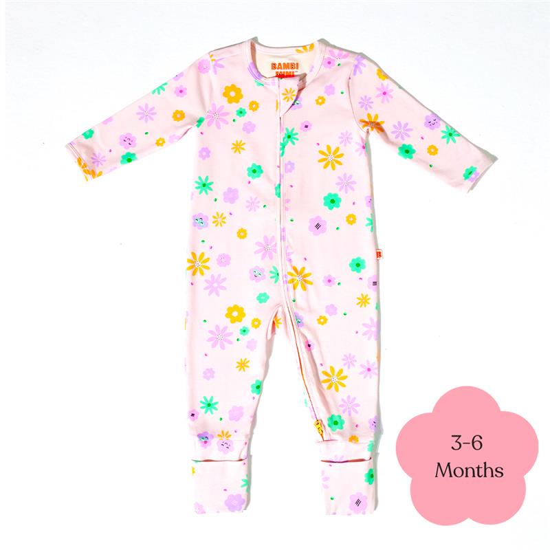 Bambi Mini Co. Wrigglesuit bé gái màu hồng neon hoa 3-6