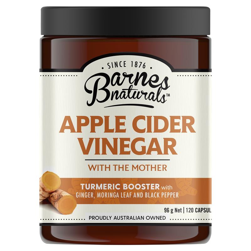 Viên nang giấm táo Barnes Naturals Turmeric Booster là sự kết hợp tự nhiên giúp phục hồi sức khỏe của giấm táo được chế tạo với các thành phần chống oxy hóa siêu thực phẩm bao gồm nghệ, cây chùm ngây và gừng, theo truyền thống được sử dụng để hỗ trợ sức khỏe và tinh thần. Chúng tôi sử dụng quy trình sấy nhẹ nhàng để đảm bảo 'The Mother' được giữ lại, do đó bạn sẽ nhận được tất cả các lợi ích mà không có mùi hoặc vị giấm.