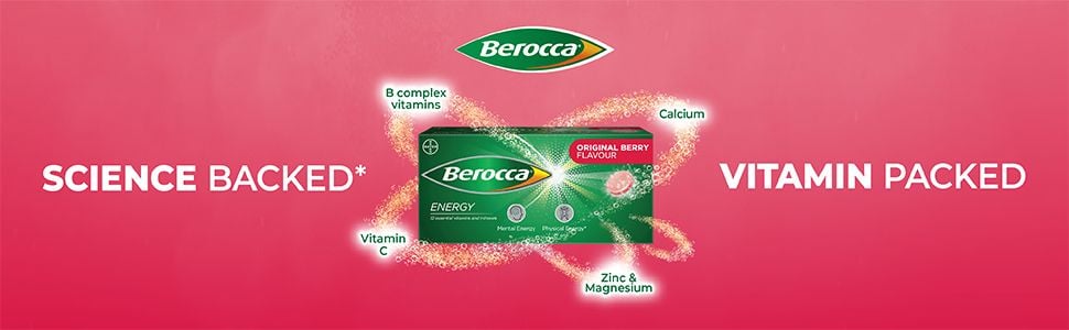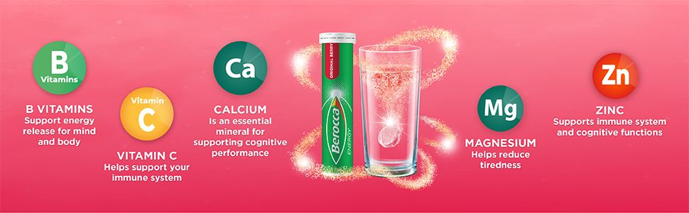 Berocca Energy được khoa học chứng minh* và chứa nhiều vitamin với 12 loại vitamin và khoáng chất thiết yếu. Công thức mạnh mẽ chứa magiê, kẽm, canxi, vitamin C và tất cả 8 loại vitamin B giúp giải phóng năng lượng từ thức ăn của bạn, giảm mệt mỏi và hỗ trợ sức bền thể chất^Berocca là loại vitamin tổng hợp năng lượng được thử nghiệm lâm sàng nhiều nhất trên thế giới* 2-8 .