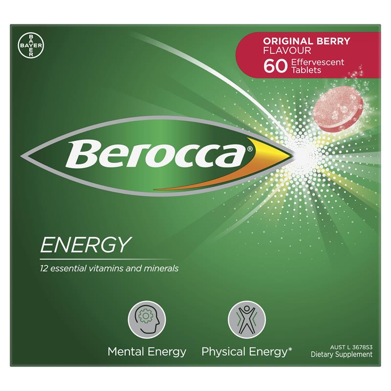 Berocca Energy là loại vitamin tổng hợp năng lượng được thử nghiệm lâm sàng nhiều nhất trên thế giới* với 12 loại vitamin và khoáng chất thiết yếu giúp hỗ trợ mức năng lượng trong suốt cả ngày. Được khoa học chứng minh* và chứa nhiều vitamin, công thức mạnh mẽ này chứa magiê, kẽm, canxi, vitamin C và tất cả 8 loại vitamin B giúp chuyển hóa thức ăn thành năng lượng, giảm mệt mỏi và hỗ trợ sức bền thể chất^.