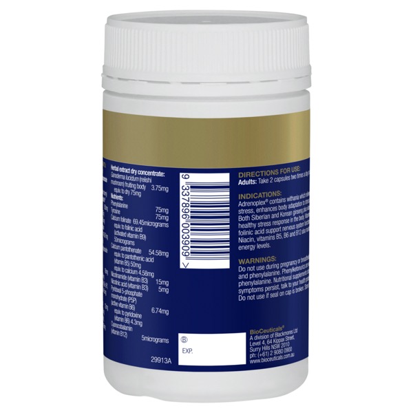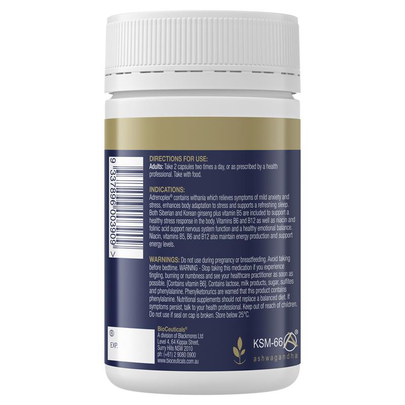 Nếu bạn cần khôi phục cảm giác bình tĩnh, thì Viên nang Adrenoplex® có thể là thứ bạn cần. Viên uống bổ sung chỉ dành cho người hành nghề này có chứa withania (Ashwagandha) được sử dụng theo truyền thống trong y học Ayurvedic để giúp làm giảm các triệu chứng lo âu và căng thẳng nhẹ và có thể giúp bạn dễ dàng có được giấc ngủ sảng khoái. Được bào chế với nhân sâm cộng với vitamin B5, Adrenoplex® giúp cơ thể bạn đối phó với căng thẳng. Người lớn: Uống hai viên nang hai lần một ngày để hỗ trợ hệ thần kinh và thúc đẩy sự cân bằng cảm xúc lành mạnh.Phù hợp cho: Chỉ dành cho người lớn hoặc theo chỉ định của chuyên gia.