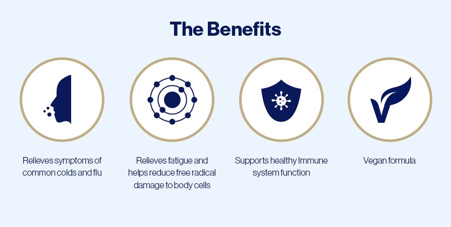 • Wellmune® làm giảm thời gian bị cảm lạnh thông thường.• Vitamin C, D, kẽm và selen hỗ trợ sức khỏe và chức năng của hệ thống miễn dịch, giúp hệ thống miễn dịch chống lại bệnh tật.