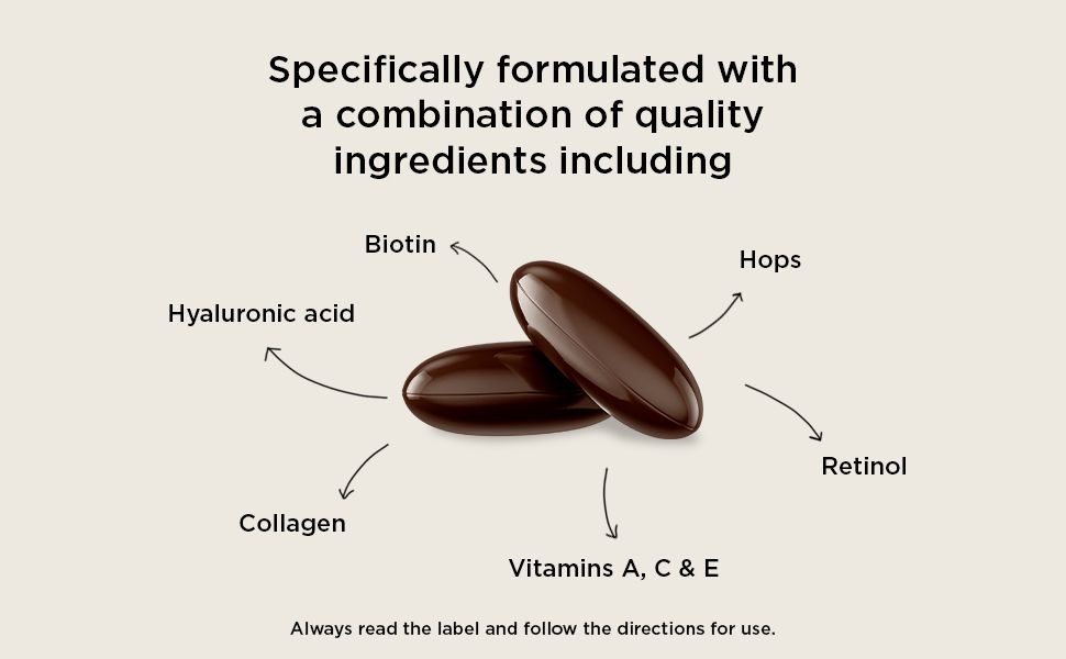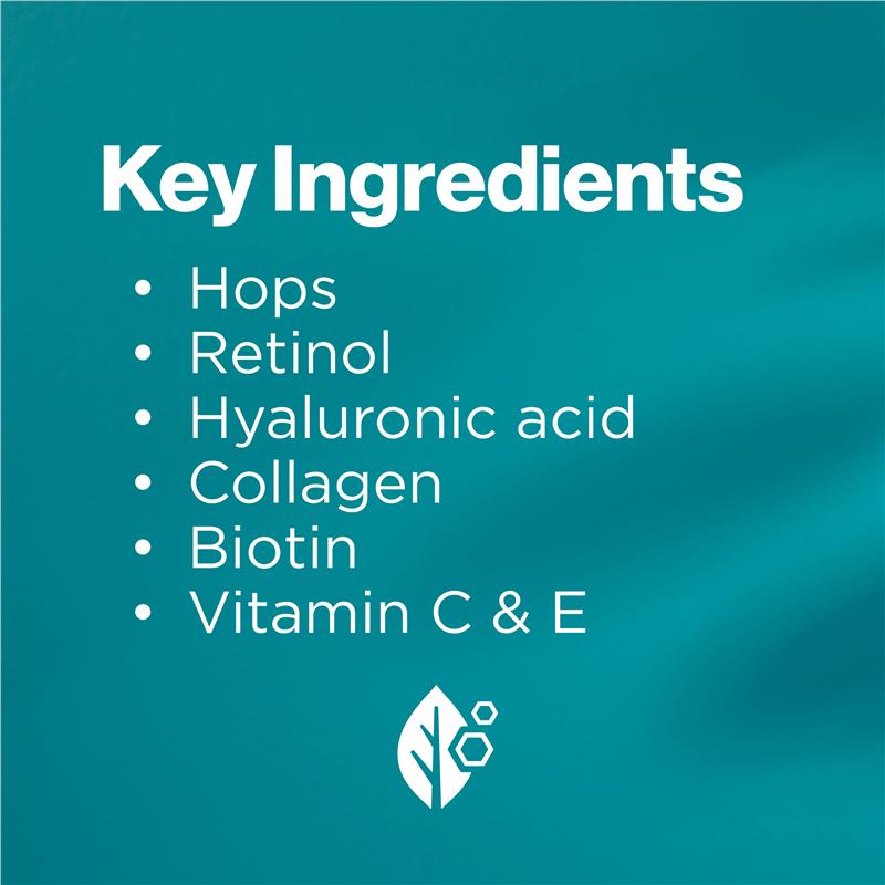 Thành phần hoạt tính: Vitamin C, Vitamin E, Retinol, Biotin, Collagen, axit hyaluronic, Hoa bia