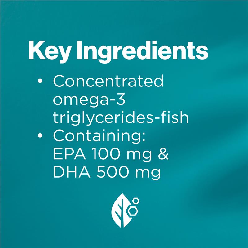 Omega-3 triglyceride từ cá cô đặc 1 g (1000 mg), chứa 600 mg omega-3 triglyceride từ biển dưới dạng axit eicosapentaenoic (EPA) 100 mg, axit docosahexaenoic (DHA) 500 mg.