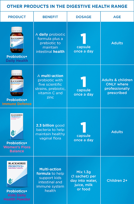 Viên nang Blackmores Probiotics+ Womens Flora Balance là một loại thực phẩm bổ sung dành cho phụ nữ có 2,3 tỷ vi khuẩn có lợi trên mỗi viên nang giúp duy trì hệ vi khuẩn âm đạo khỏe mạnh. Blackmores Probiotics+ Womens Flora Balance được bào chế với hai chủng vi khuẩn có lợi đã được thử nghiệm lâm sàng* để hỗ trợ vi khuẩn có lợi ở âm đạo. Quy trình bào chế chuyên biệt và công nghệ đóng gói của sản phẩm ngăn không cho độ ẩm gây hại cho vi khuẩn có lợi, giúp chúng sống sót. Người lớn: Uống một viên nang một lần mỗi ngày để cung cấp cho cơ thể bạn lợi ích của 2,3 tỷ vi khuẩn có lợi.