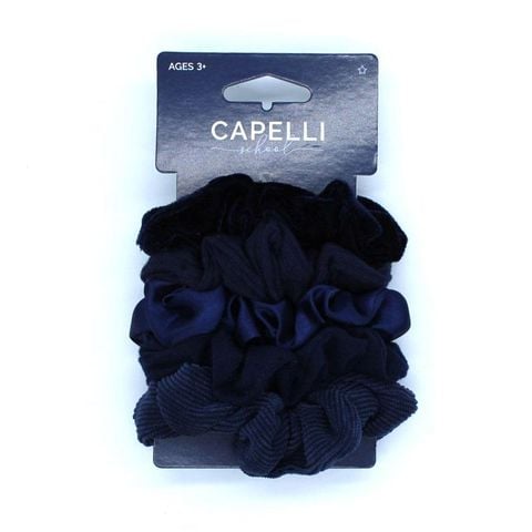 Dây buộc tóc Capelli School Scrunchie màu xanh navy gói 5