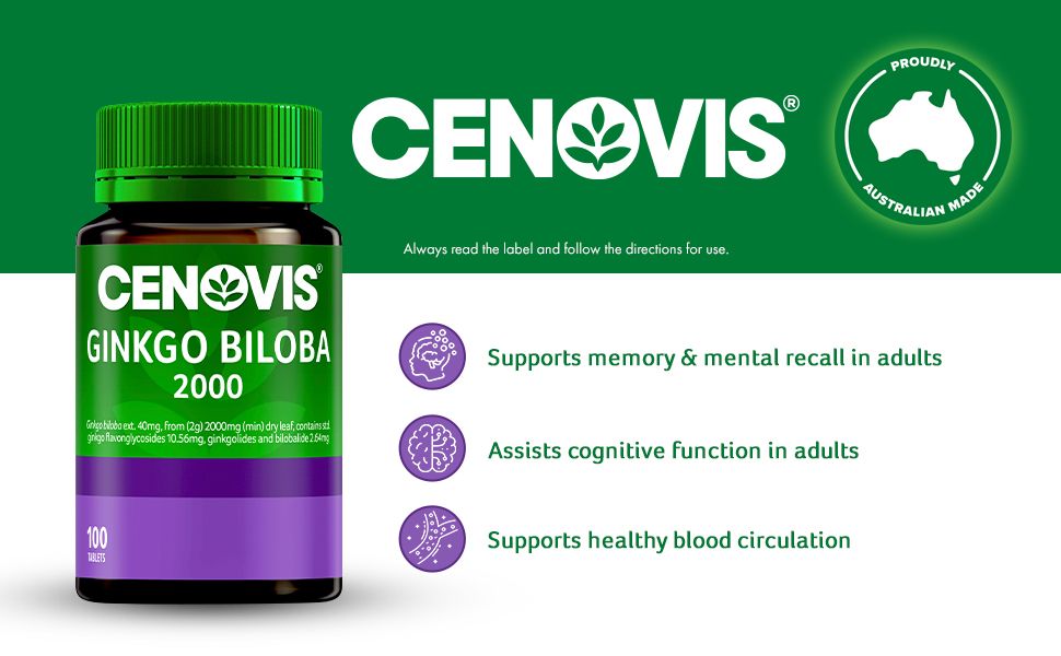 Cenovis® Ginkgo Biloba 2000 hỗ trợ trí nhớ ở người lớn.