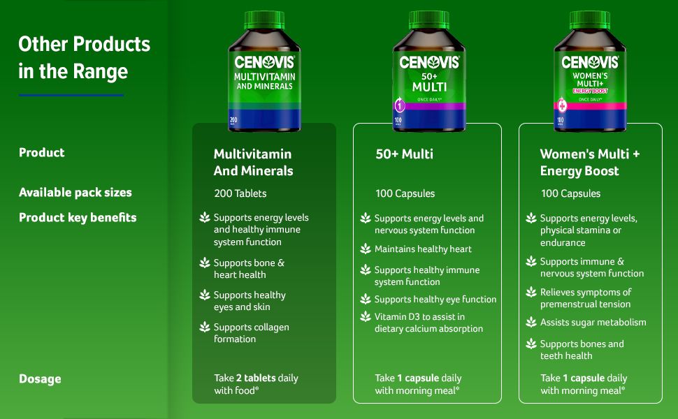 Viên uống tổng hợp vitamin và khoáng chất Cenovis® cung cấp sự kết hợp của các loại vitamin và khoáng chất cho sức khỏe tổng thể và tinh thần.