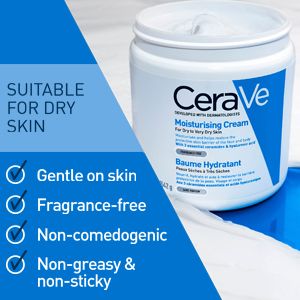 Dành cho da khô đến rất khô, Kem dưỡng ẩm CeraVe dưỡng ẩm toàn diện cho da đồng thời hỗ trợ hàng rào độ ẩm của da. Chứa 3 loại ceramide thiết yếu, axit hyaluronic và công nghệ MVE.