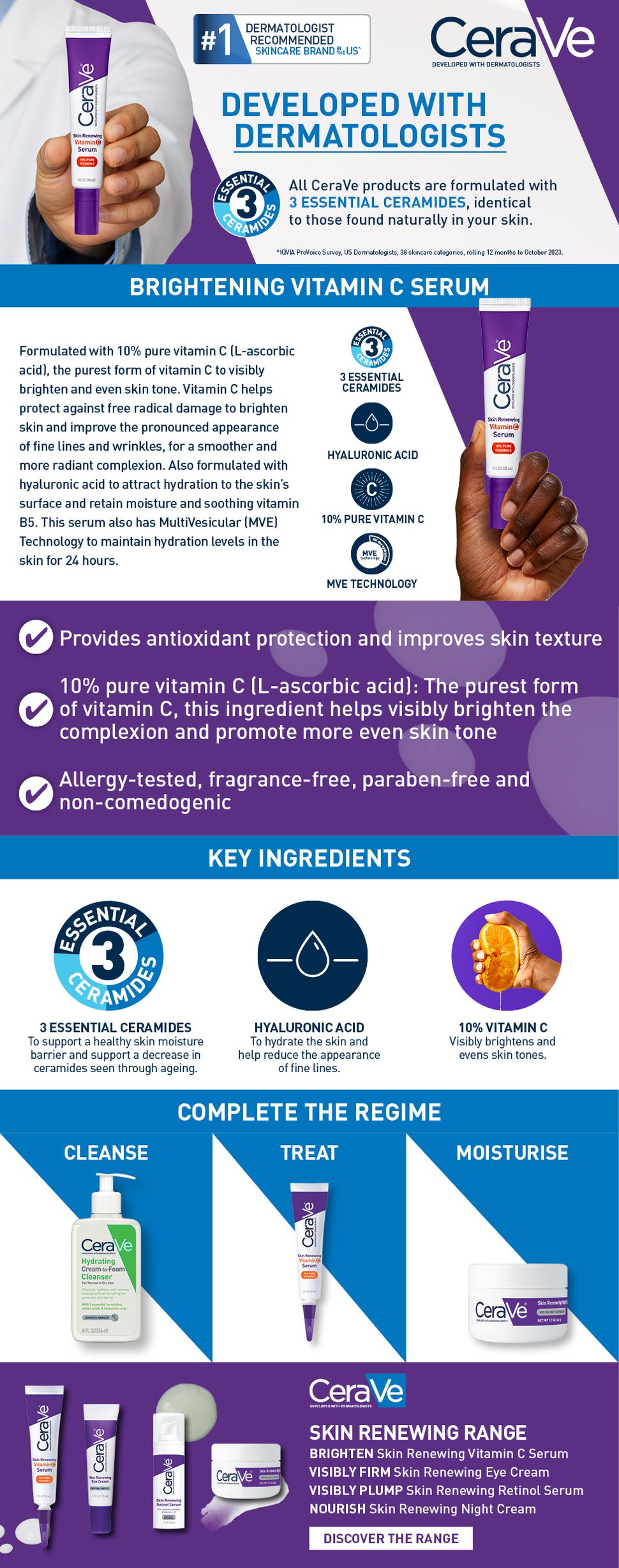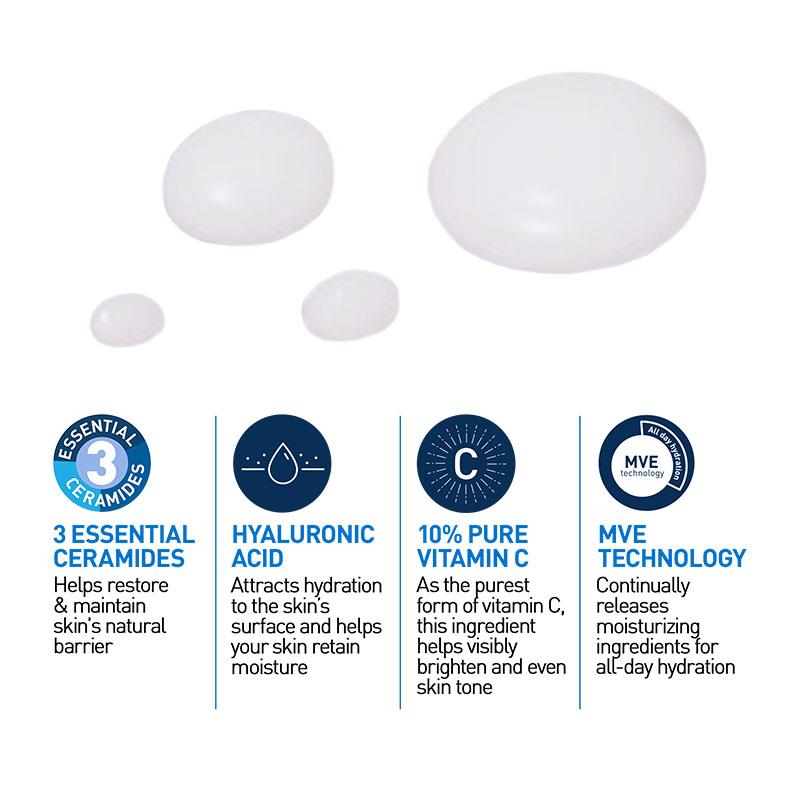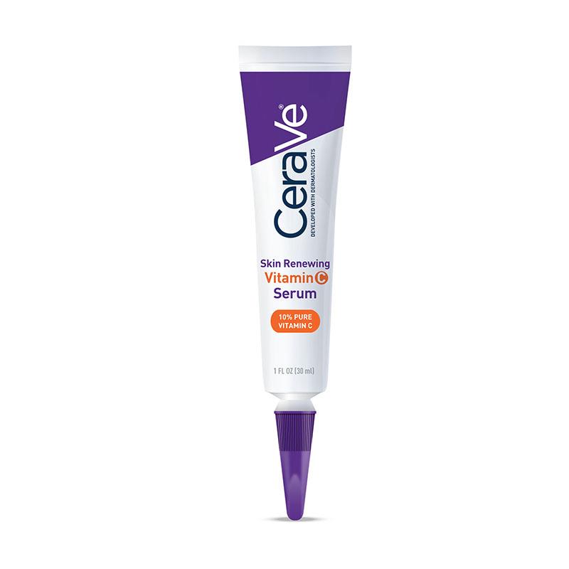 Thoa CeraVe Skin Renewing Vitamin C Serum để làm sáng da lên mặt, cổ và ngực đã được làm sạch hàng ngày.