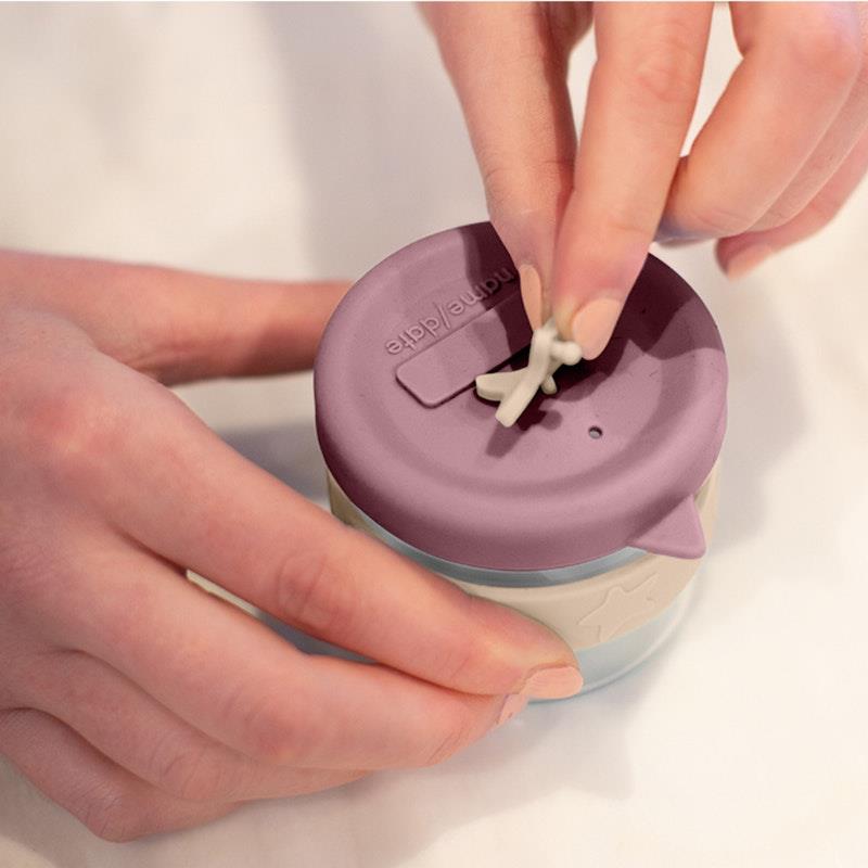 A. Dùng bút dạ không vĩnh viễn để viết phần tên/ngày tháng trên nắp. Hoặc dán nhãn bằng Nhãn dán Cherub Baby Wash Off .