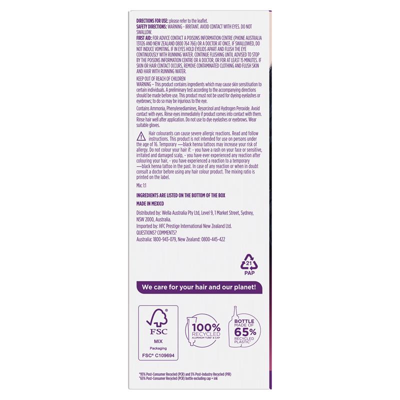 CHỈ DÀNH CHO ANZ: CẢNH BÁO - Sản phẩm này chứa các thành phần có thể gây kích ứng da cho một số cá nhân. Cần thực hiện thử nghiệm sơ bộ theo hướng dẫn đi kèm trước khi sử dụng. Không được sử dụng sản phẩm này để nhuộm lông mi hoặc lông mày; làm như vậy có thể gây hại cho mắt. Tỷ lệ pha trộn được in trên nhãn.