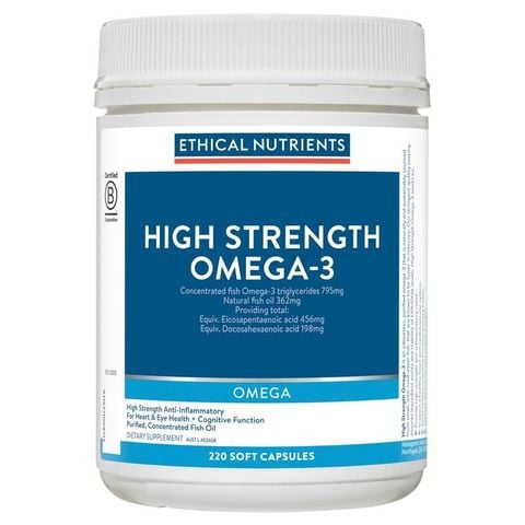 Viên nang Omega-3 cường độ cao của Ethical Nutrients là dầu cá chất lượng có tác dụng chống viêm, hỗ trợ chức năng tim, mắt và não khỏe mạnh.