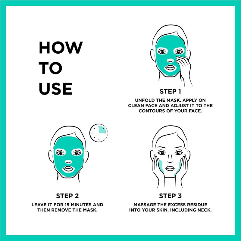 1. Mở mặt nạ ra. Nhẹ nhàng đắp lên mặt sạch. Điều chỉnh mặt nạ theo đường viền khuôn mặt. 2. Để trong 15 phút rồi tháo mặt nạ ra. 3. Massage phần huyết thanh thừa vào da, bao gồm cả cổ, hoặc dùng bông tẩy trang lau sạch.
