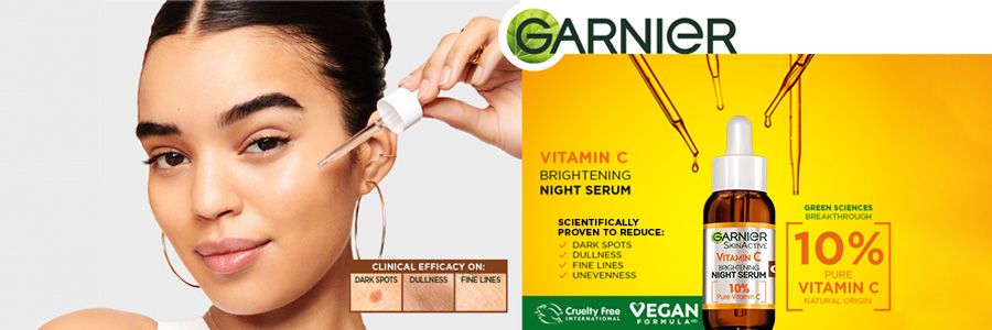 Serum dưỡng da ban đêm Brightening Night Serum mới này, mở rộng dòng sản phẩm Vitamin C mang tính biểu tượng của Garnier, được bổ sung 10% Vitamin C nguyên chất để làm sáng rõ rệt làn da xỉn màu và mệt mỏi qua đêm. Đây là thời điểm lý tưởng khi làn da của bạn dễ tiếp nhận các lợi ích chăm sóc da nhất, mang lại làn da rạng rỡ khi thức dậy. Serum này được thiết kế để phù hợp với mọi loại da và tông màu da, và đã được kiểm nghiệm da liễu.Kích thước: 30ml