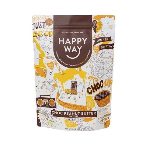 Bột Protein Whey Bơ Đậu Phộng Sôcôla 100% tự nhiên của Happy Way là sự kết hợp hoàn hảo giữa hương vị sô cô la và bơ đậu phộng. Được chế biến từ các thành phần hữu cơ như đậu phộng, ca cao và bột dừa, sản phẩm lý tưởng để thỏa mãn cơn thèm ăn đồng thời hỗ trợ mục tiêu thể dục của bạn. Hãy bỏ thanh sô cô la caramel đi—sản phẩm này cũng sẽ thỏa mãn vị giác và tốt hơn cho bạn! Thành phần Whey Protein Concentrate 84% [Whey (Sữa), Lecithin Hoa Hướng Dương], Bột Ca Cao Hữu Cơ, Hương Vị Tự Nhiên, Bột Đậu Phộng, Bột Sữa Tách Béo, Bột Dừa (Chứa Triglyceride Chuỗi Trung Bình, Kẹo Cao Su Acacia), Bột Maca Hữu Cơ, Hạt Chia Hữu Cơ, Vỏ Hạt Mã Đề, Chất Tạo Ngọt (Steviol Glycoside, Thaumatin), Muối Đá Himalaya. Chất Gây Dị Ứng Có Thể Chứa Các Loại Hạt Cây, Trứng, Hạt Vừng. Chứa: Sữa, Đậu Phộng Hướng Dẫn Sử Dụng Lắc 30 gam trong lọ hoặc bình lắc với 250ml nước, sữa hoặc sữa hạt. Ngoài ra, bạn có thể trộn 30 gram vào yến mạch, sữa chua tự nhiên hoặc sinh tố. Để có kết quả tối ưu, hãy dùng hai lần một ngày. Hướng dẫn bảo quản Bảo quản dưới 30°C, tránh ánh nắng trực tiếp. Cảnh báo Sản phẩm này là thực phẩm bổ sung thể thao được pha chế và không phải là nguồn dinh dưỡng duy nhất. Nên dùng kết hợp với chế độ ăn uống lành mạnh, đa dạng, lối sống năng động và chương trình tập luyện phù hợp. Không phù hợp với trẻ em dưới 15 tuổi hoặc phụ nữ mang thai. Chỉ nên sử dụng dưới sự giám sát của bác sĩ hoặc chuyên gia dinh dưỡng. Vui lòng tham khảo bao bì sản phẩm.