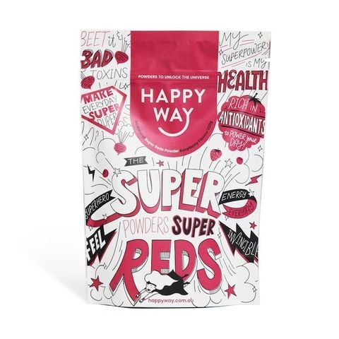 Một nguồn dinh dưỡng dồi dào, Bột Super Reds của Happy Way chứa đầy các thành phần siêu thực phẩm giàu chất chống oxy hóa để thúc đẩy năng lượng, sức sống và sức khỏe cũng như tinh thần tối ưu. Người ta nói rằng mọi điều tốt đẹp đều nằm trong những gói nhỏ và Bột Super Reds của chúng tôi cũng không ngoại lệ! Được thiết kế để tăng cường mức năng lượng, bảo vệ hệ thống miễn dịch và giúp cơ thể loại bỏ độc tố, loại bột siêu thực phẩm hoàn toàn tự nhiên này là một cách thuận tiện để có được tất cả các chất dinh dưỡng bạn cần để cung cấp năng lượng cho cả ngày cũng như tăng cường và thúc đẩy làn da khỏe mạnh, rạng rỡ! Được đóng gói với các thành phần lành mạnh và không có bất kỳ chất gây hại tiềm ẩn nào, Bột Super Reds của chúng tôi tiến xa hơn một bước nữa với việc bổ sung prebiotic và probiotic — để hỗ trợ vi khuẩn có lợi trong cơ thể. Mang đến hương vị quả mọng ngon ngọt, sản phẩm này đã nhanh chóng trở thành sản phẩm được yêu thích của Happy Way. - Xem bao bì để biết hướng dẫn sử dụng. Hỗn hợp bột nước ép siêu thực phẩm đỏ độc quyền (Củ cải đường, Lựu, Mâm xôi, Dâu tây, Quả cơm cháy, Lý chua đen, Việt quất, Nam việt quất, Acai, Quả kỷ tử, Acerola hữu cơ, Quả hắc mai biển hữu cơ, Quả Maqui hữu cơ), Probiotic (Chicory Inulin, FOS, GOS), Hương vị tự nhiên, Bột gạo, Chất điều chỉnh độ axit (Axit malic, Axit xitric), Tảo biển (Lithothamnion Sp.), Probiotic (Bacillus Coagulans), Chất tạo ngọt (Thaumatin). KHÔNG CHỨA GLUTEN. CHẤT GÂY DỊ ỨNG: Sản phẩm này có thể chứa: sữa, lúa mì, gluten, đậu nành, trứng, đậu phộng, hạnh nhân, hạt điều, hạt phỉ và hạt mắc ca vì sản phẩm này sử dụng chung thiết bị sản xuất với các sản phẩm khác. Những người bị dị ứng thực phẩm nên tham khảo ý kiến chuyên gia y tế trước khi sử dụng.