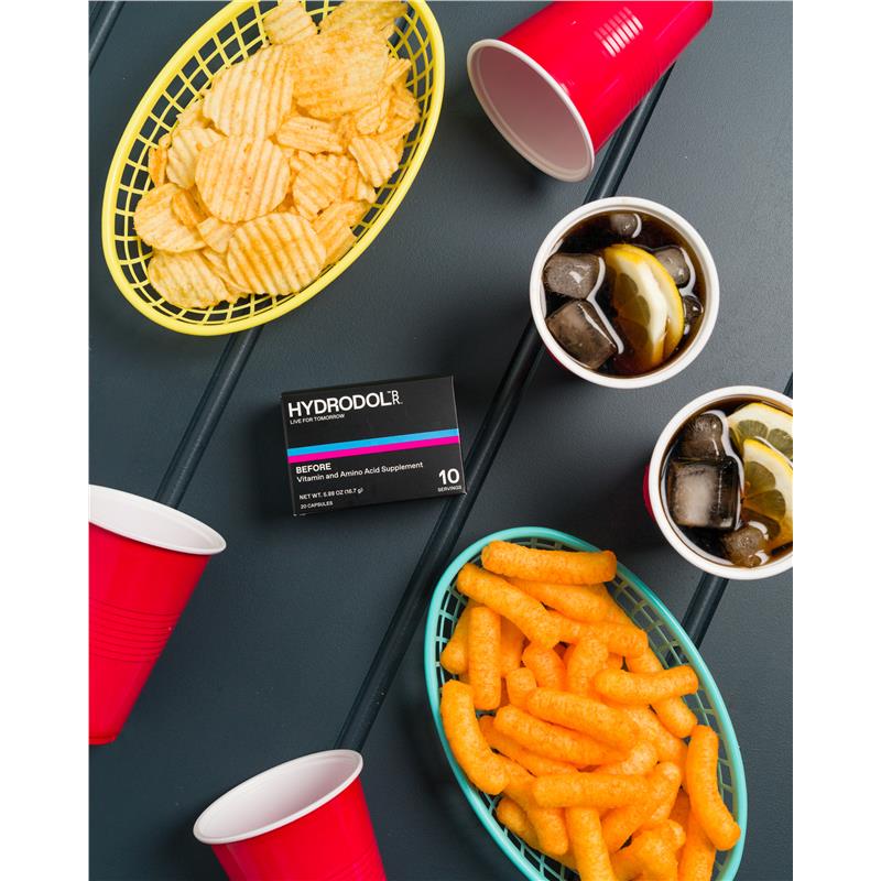 Uống hai viên nang mỗi ngày, Hydrodol Before, Hydrodol Liver Health hoặc chỉ cần thêm nước vào gói Hydrodol Before và After của chúng tôi.