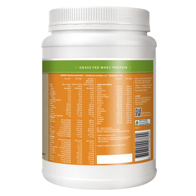 15g protein whey nguyên chất, có nguồn gốc từ bò ăn cỏ - chất lượng cao cấp và tỷ lệ cụ thể giữa protein whey cô đặc và protein whey cô lập.