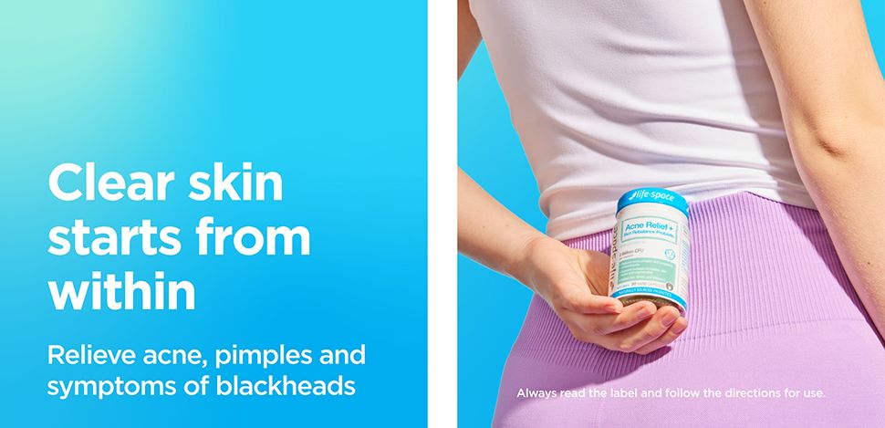 Life-Space Acne Relief + Skin Rebalance Probiotic: Giải pháp toàn diện cho làn da sạch và khỏe mạnhTrải nghiệm sức mạnh của chăm sóc da với Life-Space Acne Relief + Skin Rebalance Probiotic, một công thức men vi sinh cao cấp được thiết kế để làm giảm mụn trứng cá, mụn nhọt, các triệu chứng của mụn đầu đen và hỗ trợ sức khỏe làn da. Được bào chế với sự pha trộn chính xác của các vi khuẩn có lợi, cùng với Lactoferrin, Kẽm, Vitamin E & C và Biotin, công thức tiên tiến này mang lại nhiều lợi ích cho làn da của bạn.