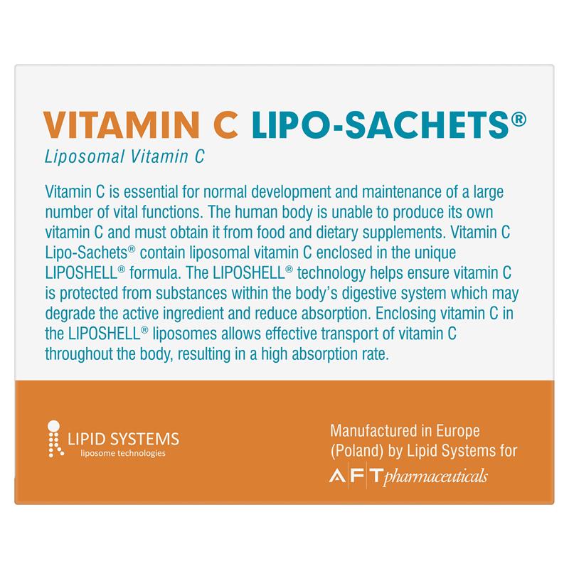 Vitamin C rất cần thiết cho sự phát triển bình thường và duy trì nhiều chức năng quan trọng. Cơ thể con người không thể tự sản xuất vitamin C và phải lấy từ thực phẩm và các chất bổ sung chế độ ăn uống. Vitamin C Lipo-Sachets® chứa vitamin C dạng liposome được bao bọc trong công thức LIPOSHELL® được cấp bằng sáng chế. Công nghệ LIPOSHELL® giúp bảo vệ vitamin C khỏi các chất trong hệ tiêu hóa của cơ thể có thể làm phân hủy thành phần hoạt tính và làm giảm khả năng hấp thụ. Bao bọc vitamin C trong các liposome LIPOSHELL® cho phép vận chuyển hiệu quả vitamin C đến các vị trí trong cơ thể cần vitamin, dẫn đến tỷ lệ hấp thụ cao.