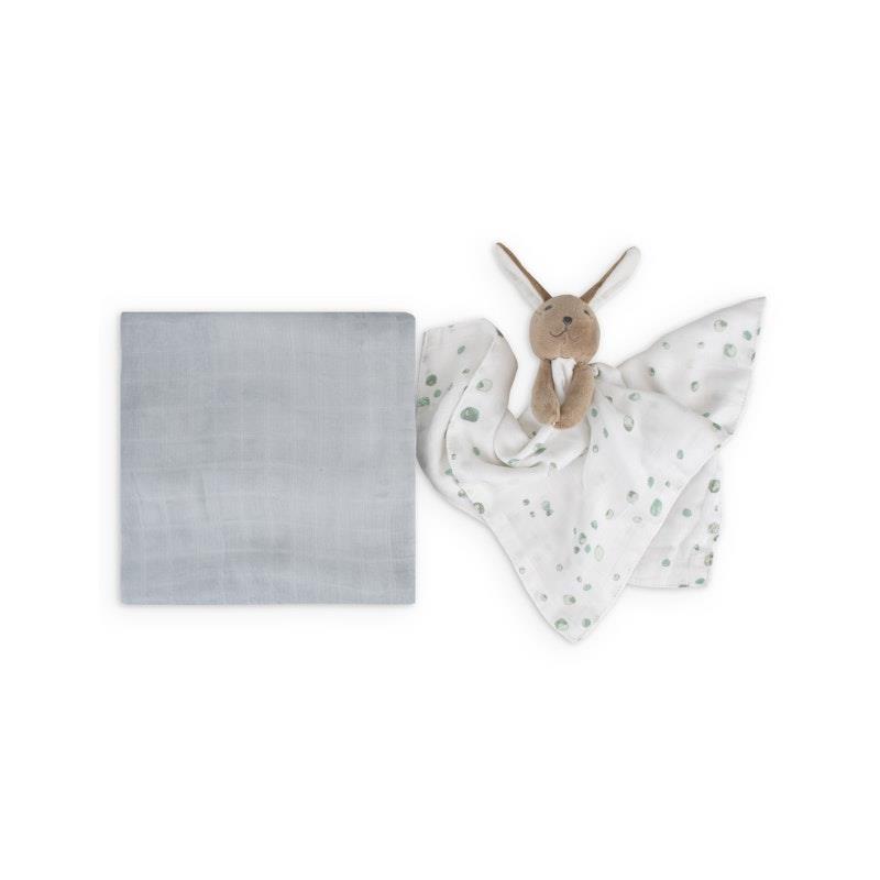 Kích thước sản phẩm - Vải quấn Muslin: 120 x 120cm. Chăn an toàn: 35x35cm (thân chăn)., Thành phần sản phẩm - Vải quấn Muslin: 70% Viscose từ Tre / 30% Cotton. Chăn an toàn: Thân: 70% Viscose từ Tre / 30% Cotton. Đầu: 100% polyester với lớp đệm 100% polyester (vật liệu hoàn toàn mới).