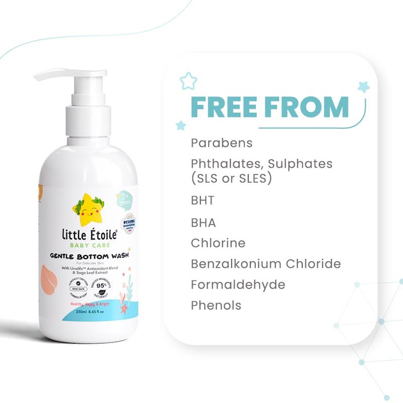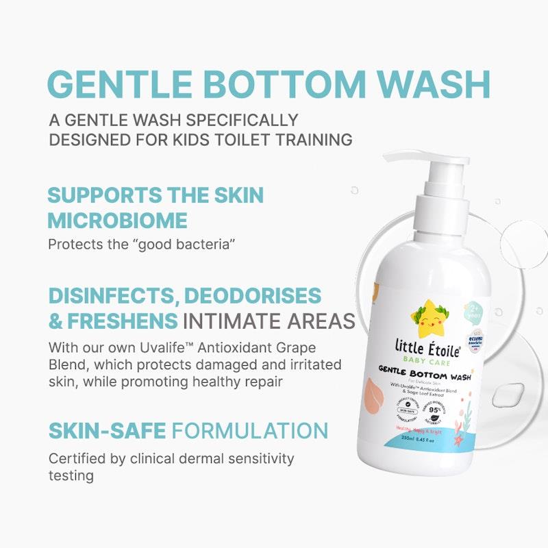 Khi nói đến việc vệ sinh vùng kín và mông của trẻ nhỏ, Gentle Bottom Wash pha trộn tự nhiên của chúng tôi sẽ đáp ứng nhu cầu này! Trong khi tập đi vệ sinh, trẻ em thường quên tự lau mình, vì vậy những vùng này cần được kiểm soát vi khuẩn và mùi hôi nhiều hơn. Gentle Bottom Wash của chúng tôi có độ pH cân bằng dành riêng cho vùng nhạy cảm này và được thiết kế để thúc đẩy thói quen vệ sinh hàng ngày tốt khi trẻ học cách tự tắm và tắm vòi sen.