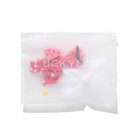 x1 nơ gosgrain chấm bi nhỏ màu hồng và trắng trên kẹp