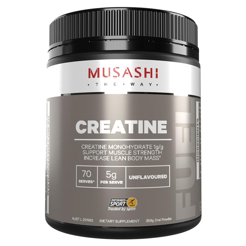MUSASHI Creatine là một loại thực phẩm bổ sung thể thao được nghiên cứu kỹ lưỡng và sử dụng rộng rãi. Creatine là một phân tử được sản xuất trong cơ thể và là tiền chất của Phosphocreatine trong chế độ ăn uống giúp giải phóng năng lượng. Nó có thể giúp hỗ trợ sản xuất năng lượng, tăng cường sức mạnh cơ bắp và tăng khối lượng cơ nạc trong quá trình tập luyện cường độ cao và tập luyện sức bền. MUSASHI Creatine được vi hạt để đảm bảo dễ trộn. Dinh dưỡng thể thao đáng tin cậyTuyên bố về sản phẩm: HỖ TRỢ SỨC MẠNH CƠ BẮP, TĂNG KHỐI LƯỢNG CƠ NẠC*