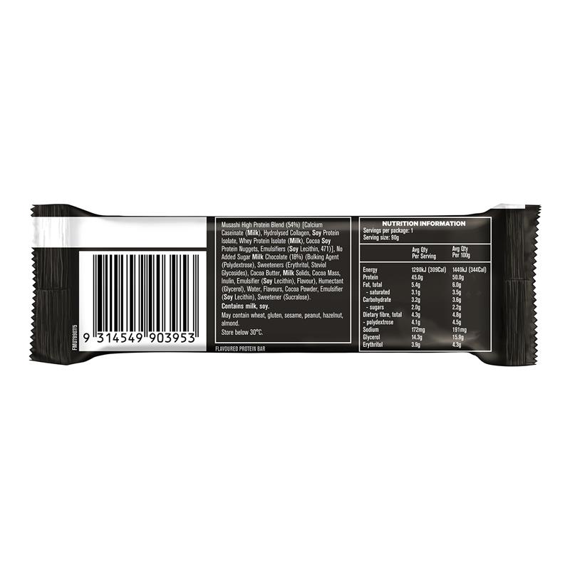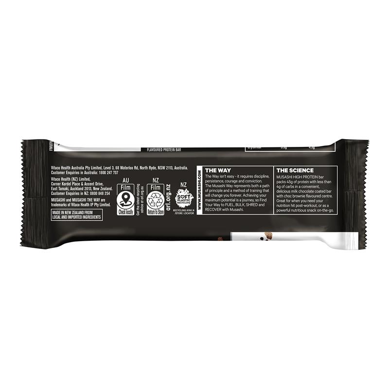 Bánh Brownie sô cô la sữa giàu protein Musashi là thanh sô cô la phủ sô cô la thơm ngon với phần nhân có hương vị hấp dẫn và 45g protein chất lượng cao.
