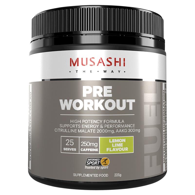 MUSASHI Pre-Workout là một công thức độc đáo chứa hỗn hợp Citrulline, Beta-Alanine, Caffeine, Creatine và Amino axit để hoạt động như một chất xúc tác trước khi tập luyện để đưa trò chơi hoặc buổi tập gym của bạn lên một tầm cao mới. Hỗn hợp thơm ngon sảng khoái này được xây dựng theo công thức khoa học để hỗ trợ nhu cầu dinh dưỡng thể thao của bạn. Dinh dưỡng thể thao đáng tin cậyTuyên bố về sản phẩm: CÔNG THỨC CÓ HIỆU LỰC CAO, HỖ TRỢ NĂNG LƯỢNG VÀ HIỆU SUẤT, CITRULLINE MALATE 2000mg, AAKG 300mg
