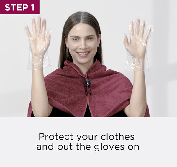 Đặt một chiếc áo choàng hoặc khăn choàng cũ quanh vai để bảo vệ quần áo và đeo găng tay đi kèm.