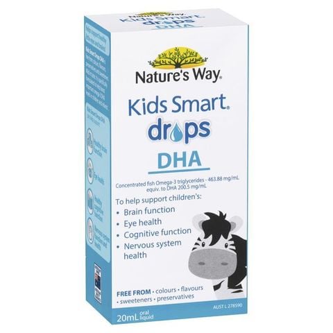 Nature's Way Kids Smart Drops DHA giúp hỗ trợ chức năng não bộ, sức khỏe mắt, chức năng nhận thức và sức khỏe hệ thần kinh của trẻ em.