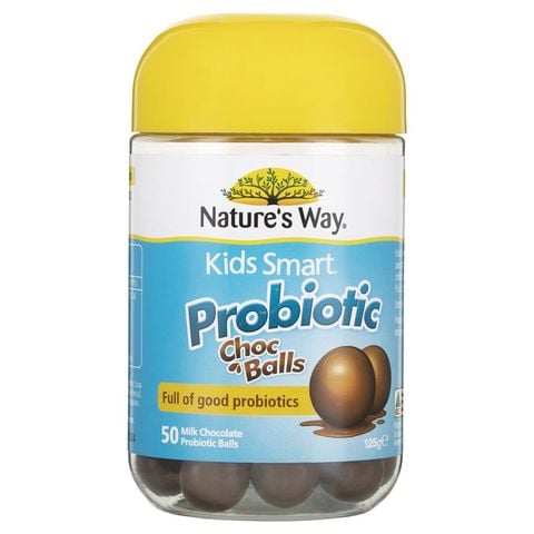 Viên sô cô la Probiotic dành cho trẻ em Nature's Way Kids Smart chứa đầy đủ các loại lợi khuẩn có lợi.