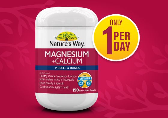 Sự kết hợp năng động của Magiê & Canxi với Vitamin D3 giúp hỗ trợ sức khỏe cơ và xương.