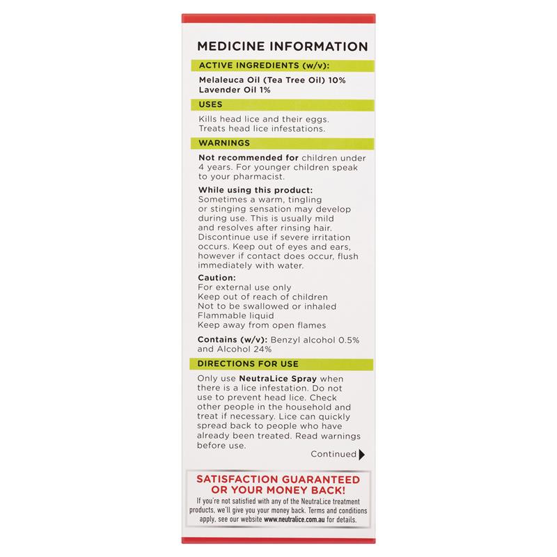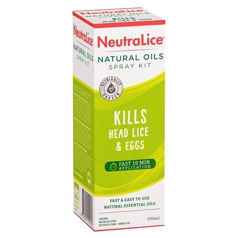 Bộ xịt tự nhiên NeutraLice 200mL đã được chứng minh lâm sàng* có tác dụng diệt chấy và trứng chấy. Bộ xịt tự nhiên chứa sự kết hợp của tinh dầu cây trà và tinh dầu hoa oải hương (tinh dầu), giúp bình xịt có mùi dễ chịu và lý tưởng cho trẻ em cũng như các thành viên khác trong gia đình. Bộ sản phẩm này bao gồm mũ tắm và lược chải chấy để phát hiện và loại bỏ trứng chấy, sử dụng nhanh chóng và dễ dàng.* Barker SC và cộng sự. BMC Dermatology 2010, 10:6.