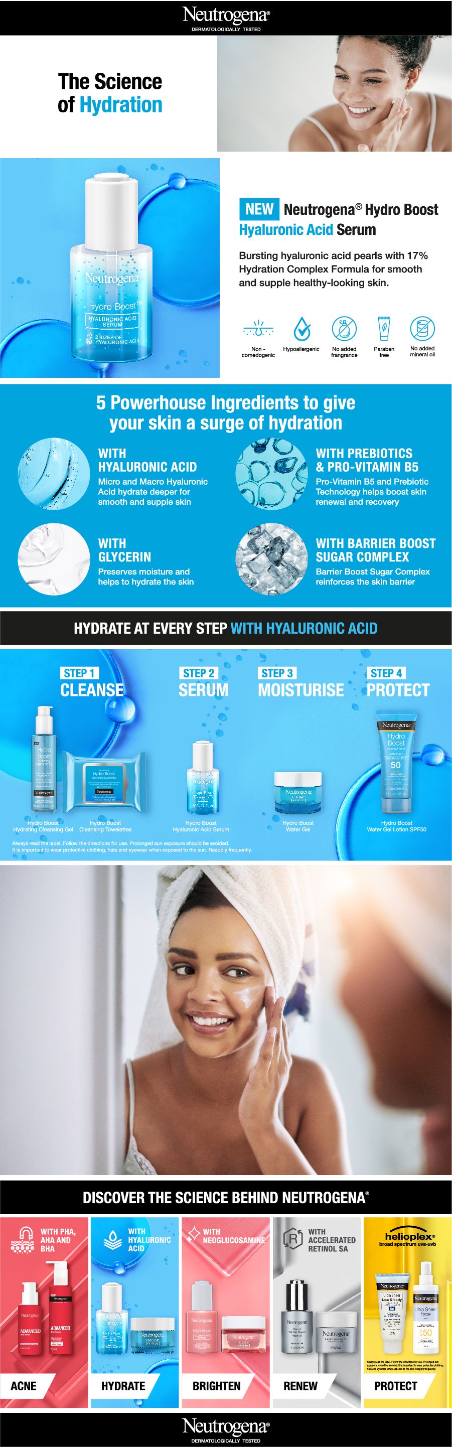 Được truyền với axit hyaluronic vi mô + vĩ mô để dưỡng ẩm sâu hơn vào bề mặt da, trong khi công nghệ pro-vitamin B5 và prebiotic giúp thúc đẩy quá trình tái tạo và phục hồi da, cho làn da khỏe mạnh.