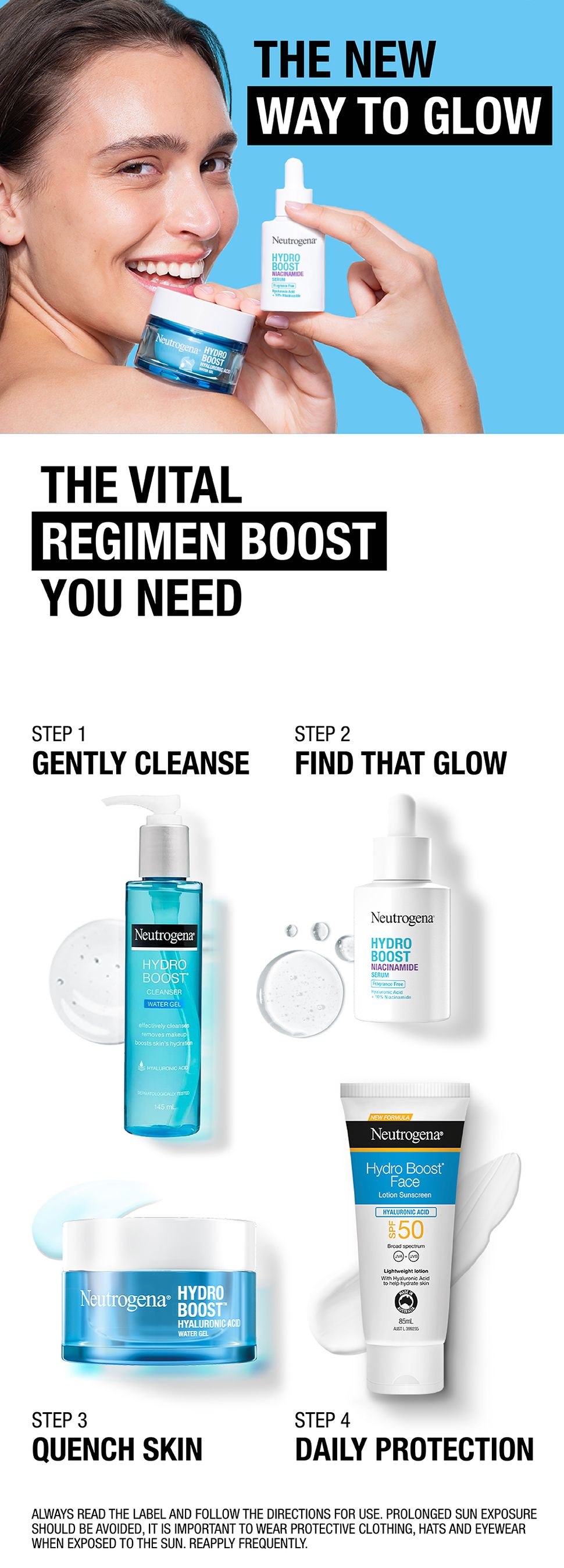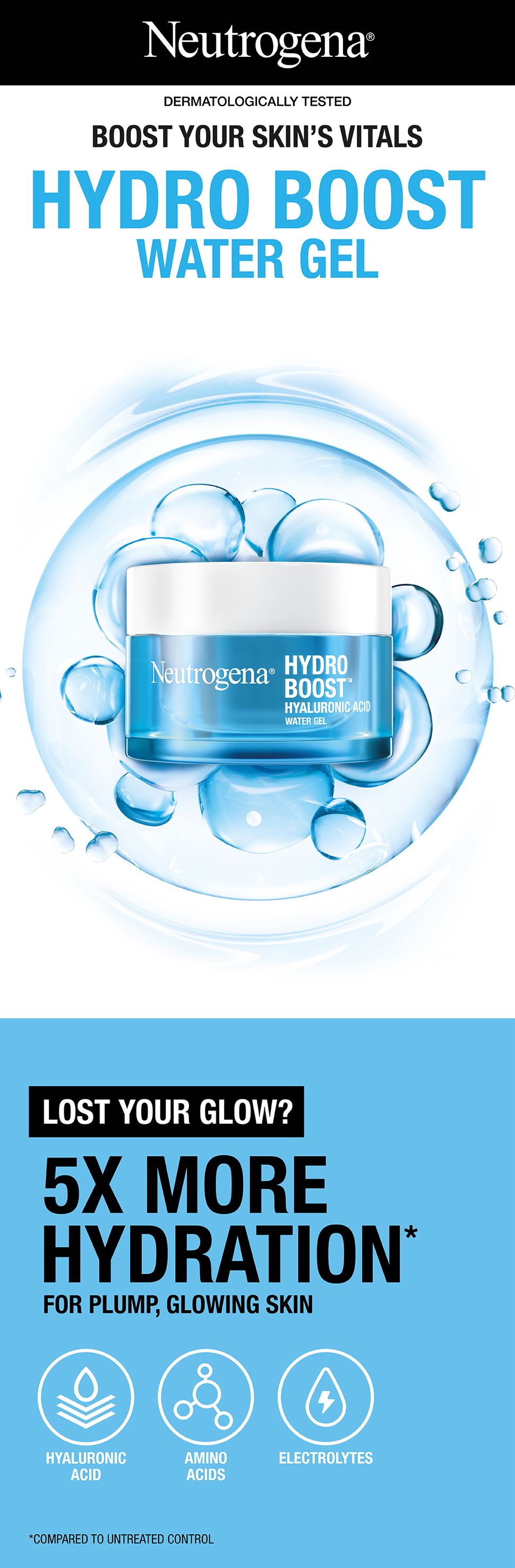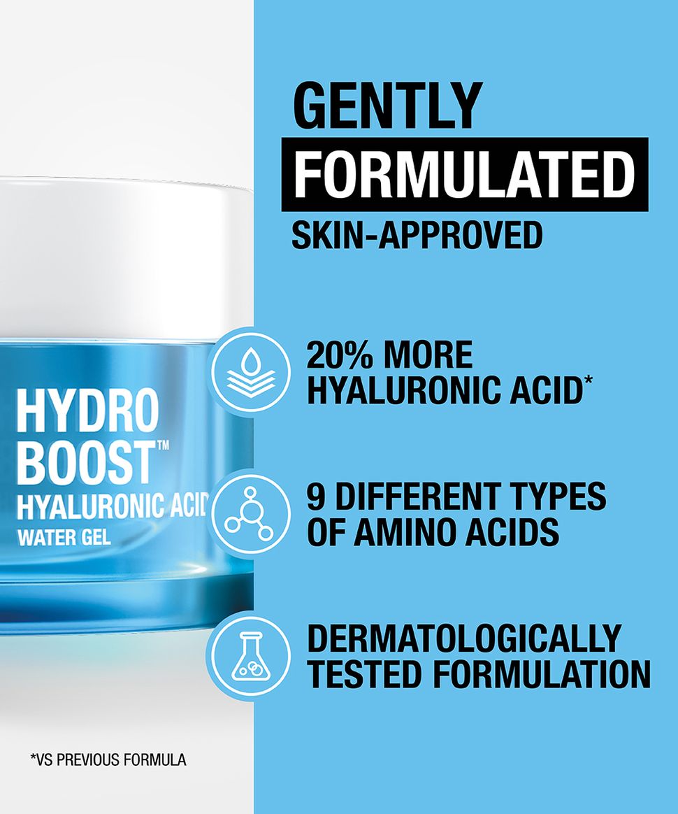 Gel nước Neutrogena Hydro Boost Hyaluronic Acid. Gel nước nhẹ này được tăng cường với các thành phần thân thiện với da - Hyaluronic Acid, Amino Acid và Electrolytes để cung cấp độ ẩm nhiều hơn gấp 5 lần* và giúp tăng cường hàng rào độ ẩm của da. Phục hồi sức sống cho làn da tươi mới, căng mọng, rạng rỡ.