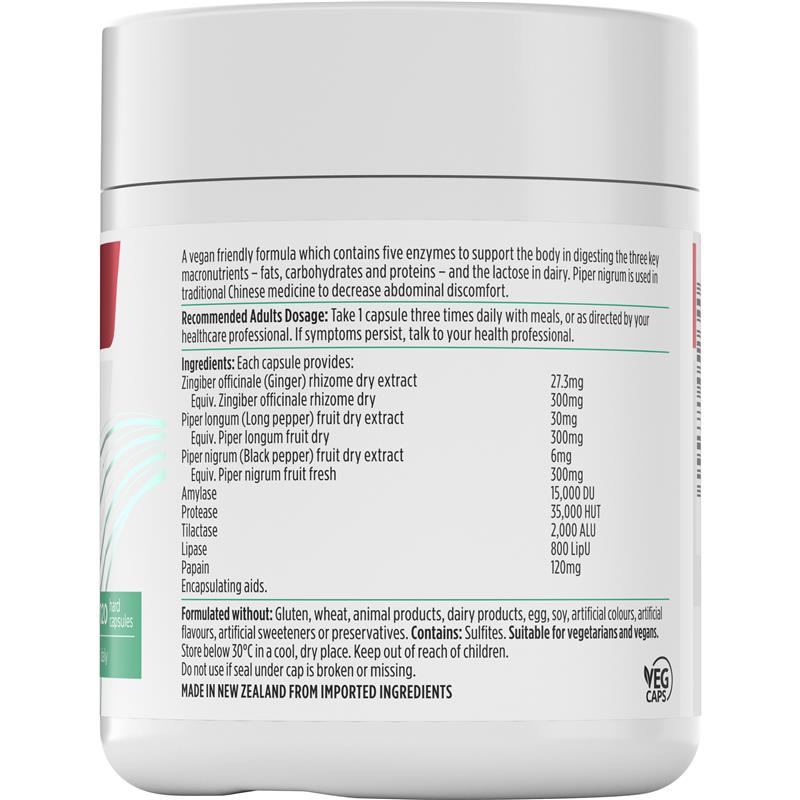 Nutra-Life® Digestive Enzymes là công thức thân thiện với người ăn chay có chứa sáu loại enzyme hỗ trợ cơ thể tiêu hóa ba chất dinh dưỡng đa lượng chính – chất béo, carbohydrate và protein – và lactose trong sữa. Piper nigrum được sử dụng trong y học cổ truyền Trung Quốc để giảm khó chịu ở bụng.