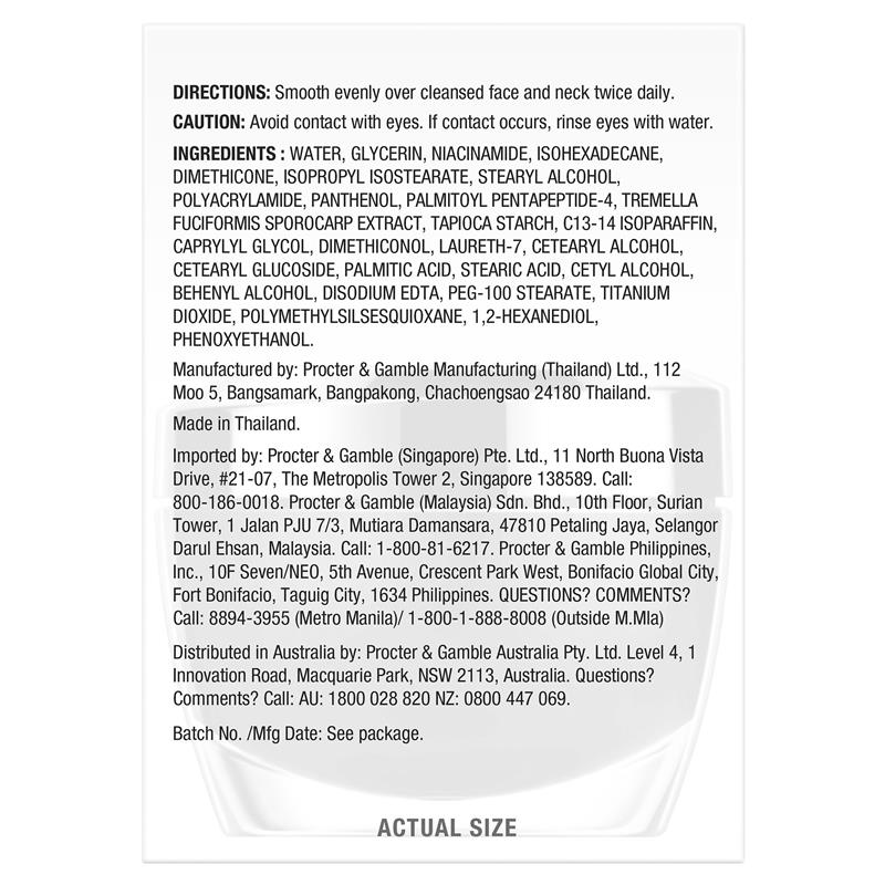 Nước, Glycerin, Niacinamide, Isohexadecane, Dimethicone, Isopropyl Isostearate, Stearyl Alcohol, Polyacrylamide, Panthenol, Palmitoyl Pentapeptide-4, Chiết xuất vỏ quả Tremella Fuciformis, Tinh bột sắn, C13-14 Isoparaffin, Caprylyl Glycol, Dimethiconol, Laureth-7, Cetearyl Alcohol, Cetearyl Glucoside, Axit Palmitic, Axit Stearic, Cetyl Alcohol, Behenyl Alcohol, Disodium Edta, Peg-100 Stearate, Titan Dioxide, Polymethylsilsesquioxane, 1,2-Hexanediol, Phenoxyethanol