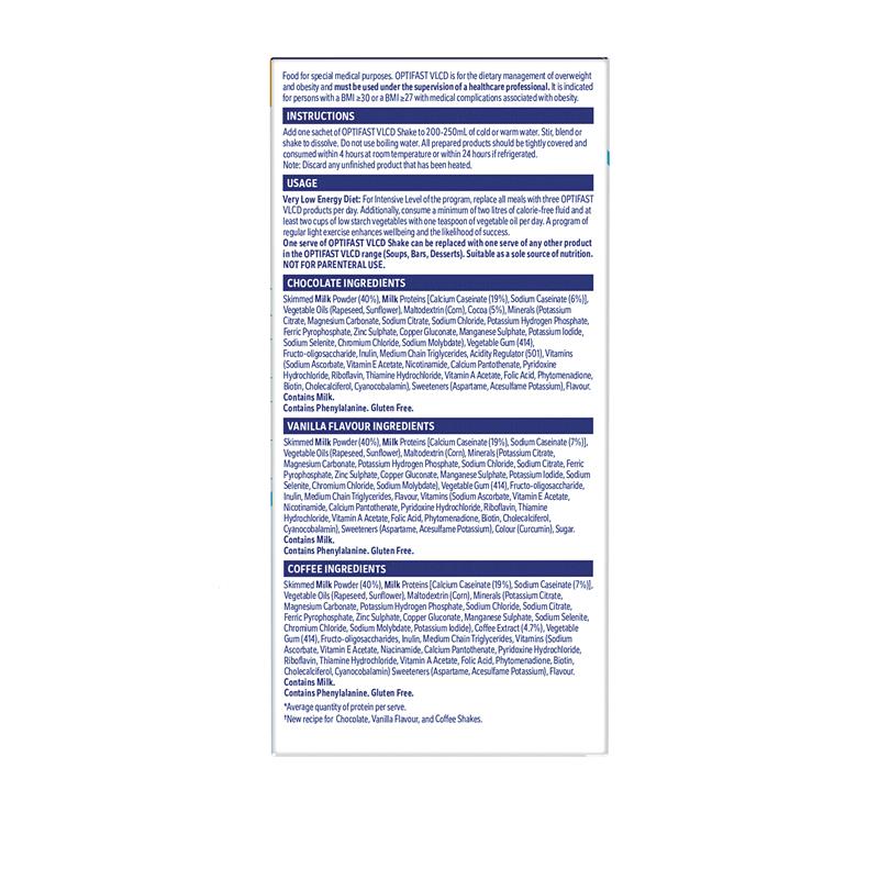 Chương trình OPTIFAST được thiết kế khoa học để giúp bạn đạt được kết quả giảm cân hiệu quả. Bất kể bạn đang ở cấp độ chương trình nào - OPTIFAST VLCD Shakes đều có thể được sử dụng để thay thế một, hai hoặc ba bữa ăn. Nếu bạn thích kết hợp, hãy xem qua nhiều loại Thanh, Súp và Tráng miệng OPTIFAST VLCD của chúng tôi và tạo ra nhiều lựa chọn bữa ăn phù hợp với sở thích và vị giác của bạn. Điều này có nghĩa là bạn có thể ăn, uống hoặc nhâm nhi và thưởng thức!