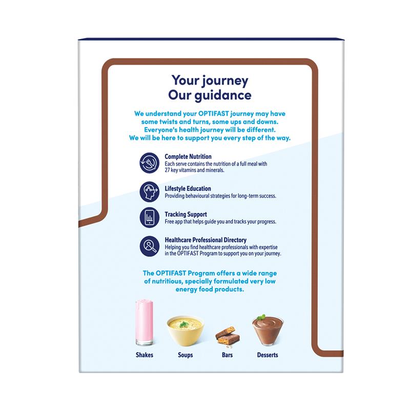 Chương trình OPTIFAST được thiết kế khoa học để giúp bạn đạt được kết quả giảm cân hiệu quả. Bất kể bạn đang ở cấp độ chương trình nào - OPTIFAST VLCD Shakes đều có thể được sử dụng để thay thế một, hai hoặc ba bữa ăn. Nếu bạn thích kết hợp, hãy xem qua nhiều loại Thanh, Súp và Tráng miệng OPTIFAST VLCD của chúng tôi và tạo ra nhiều lựa chọn bữa ăn phù hợp với sở thích và vị giác của bạn. Điều này có nghĩa là bạn có thể ăn, uống hoặc nhâm nhi và thưởng thức!