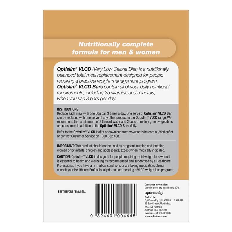 Optislim VLCD (Chế độ ăn rất ít calo) là một bữa ăn thay thế cân bằng dinh dưỡng được thiết kế cho những người cần một chương trình quản lý cân nặng thực tế. Mỗi thanh chứa tất cả các nhu cầu dinh dưỡng hàng ngày của bạn, bao gồm 25 loại vitamin và khoáng chất, khi bạn sử dụng 3 sản phẩm VLCD mỗi ngày.