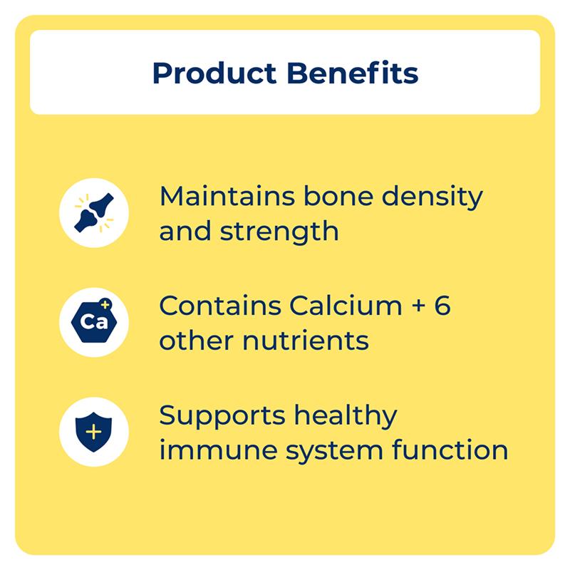 • Hỗ trợ sức khỏe xương và chức năng cơ.• Vitamin D tăng cường hấp thụ canxi.