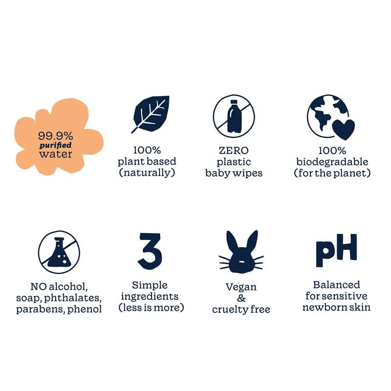 • Khăn lau nước tinh khiết 99,9%• Vật liệu phân hủy sinh học 100%